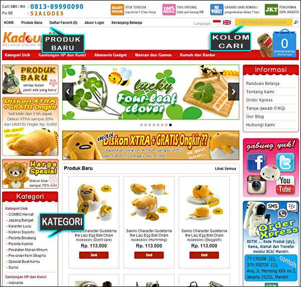 Kalau kalian sudah tahu kira-kira apa yang diinginkan maka bisa memanfaatkan KOLOM CARI yangn ada di bagian kanan atas, masukkan saja kata kunci seperti Hello Kitty, Totoro, Plugy, Dompet koin atau apapun yang ingin dicari.