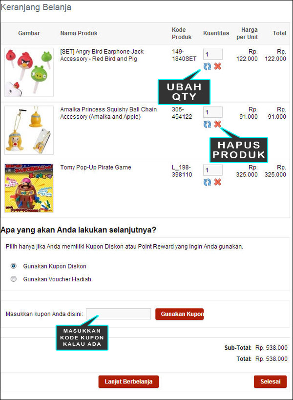 Tahap 2: memasukkan produk yang ingin dibeli kedalam keranjang belanja |